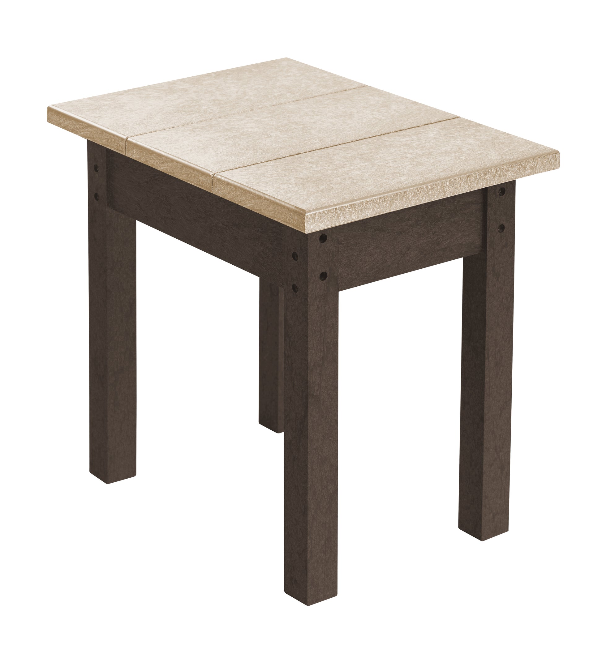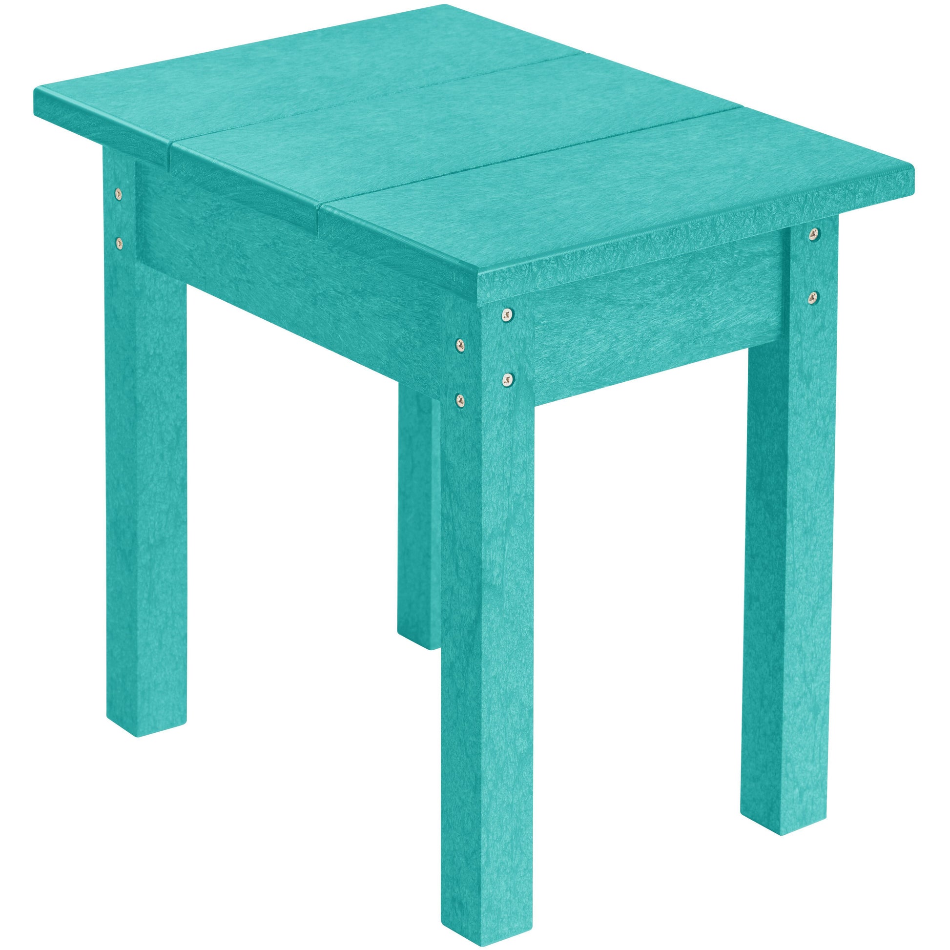 Handy rectangular table that sits nicely between two Adirondacks. Perfect for drinks! This is our most popular table. It gets the job done. Strong enough to sit on and use as a stool if you’re in a pinch. Measures 13”x18”x17”.